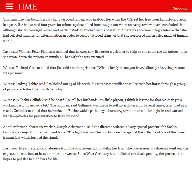 Replyain't no shame in realizing the Citizens in the ghettos across the USA suffer the same type of "justifiable evidence", we see this same kind of shyte alot. "Black Savages" are inhuman, like this Ilsa Koch. I wonder if both the Germans and the Black folks of the USA have the same enemies...