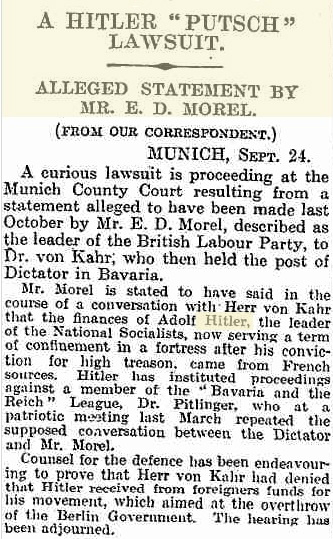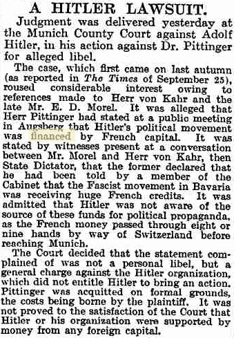 Adolf Hitler sued a Mr Pittinger in 1924 for libel, he had stated