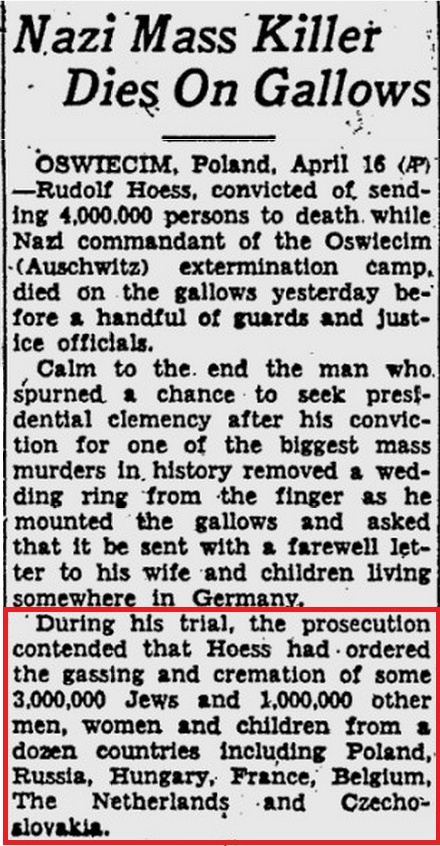 Rudolph Hoess in Poland in 1947; 3,000,000 Jews were gassed at Auschwitz