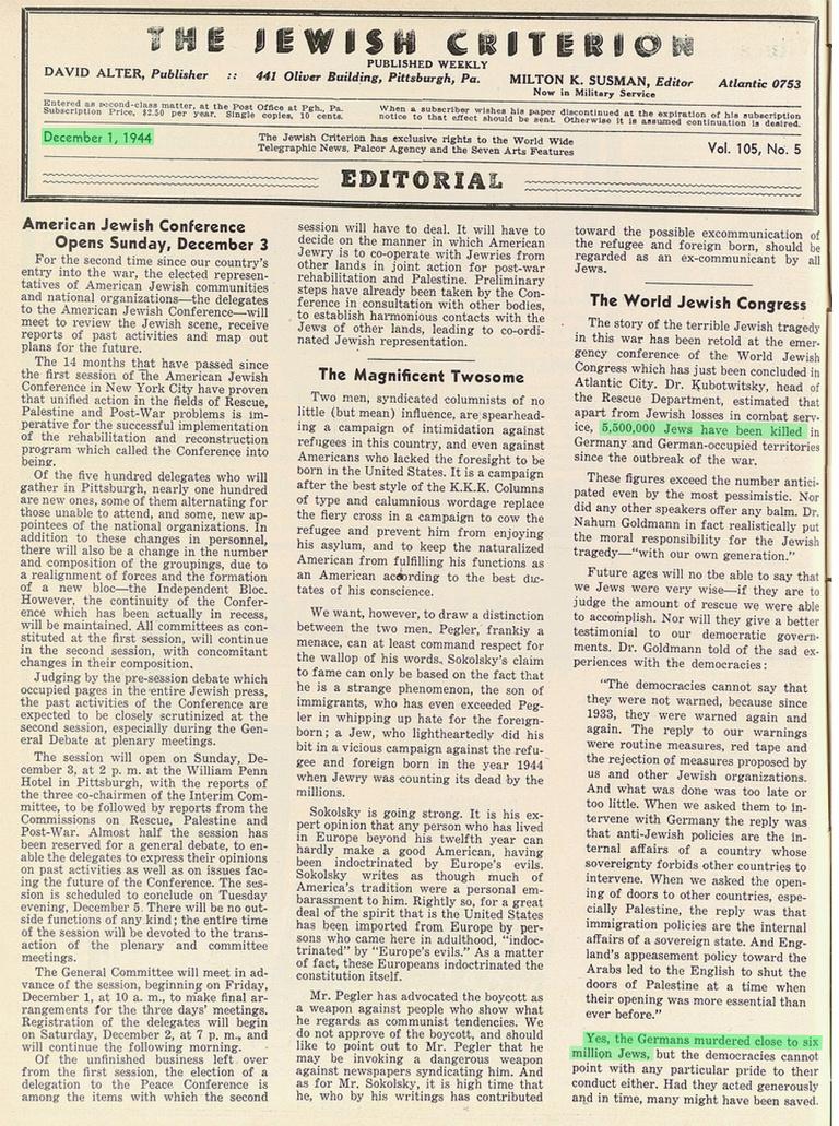 Dec 1944: Six Million Jews Killed