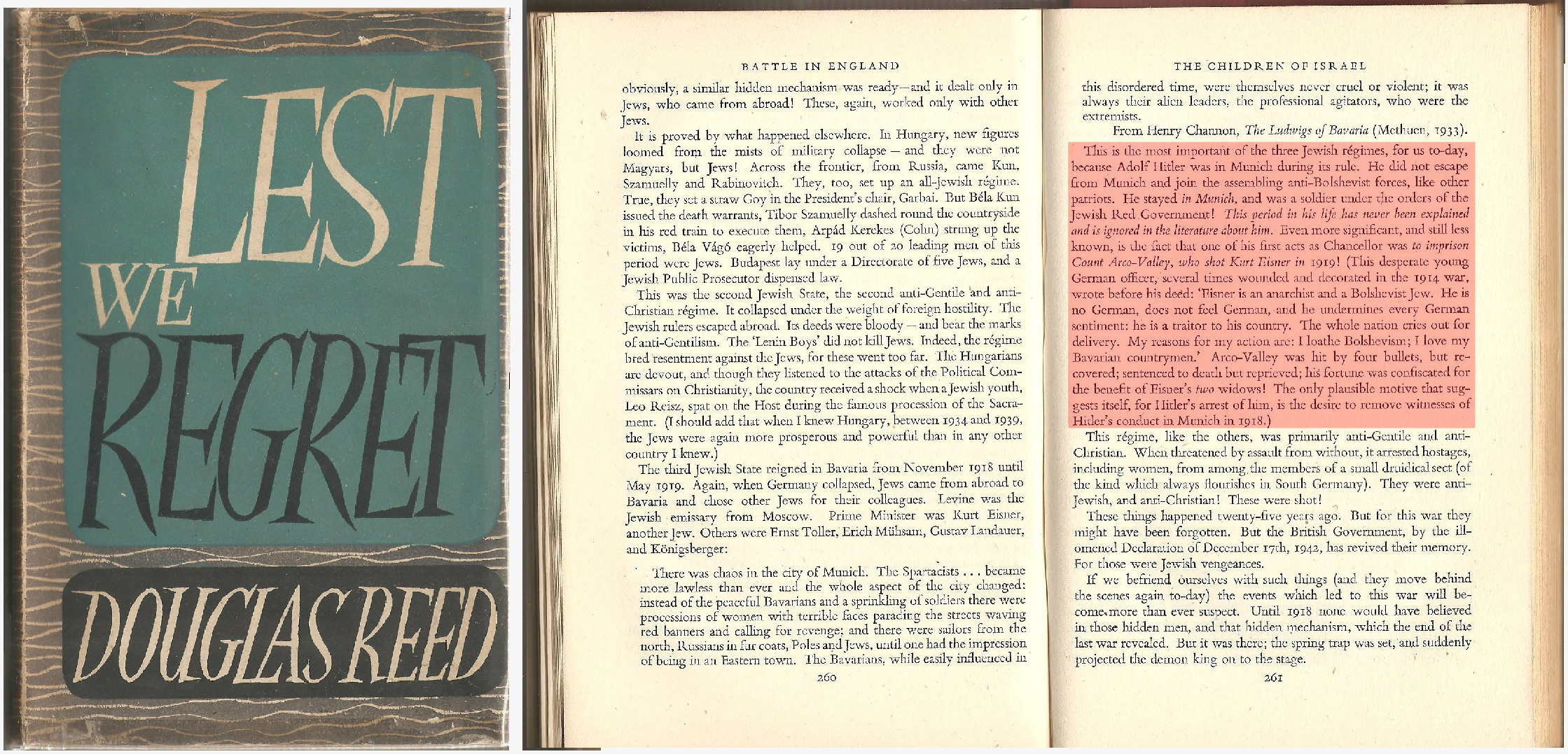 ReplyI'm a Douglas Reed fan and own most of his books. However, now I'm skeptical of this passage about Hitler's conduct in l918. Hitler's purported work for the Bolsheviks was discussed and dismissed as disinformation in two long and detailed audio conversations. At the Cristogenea. org Mein Kampf Project see William Finck's conversation with Carolyn Yeager here: http://mk.christogenea.org/mkaudio