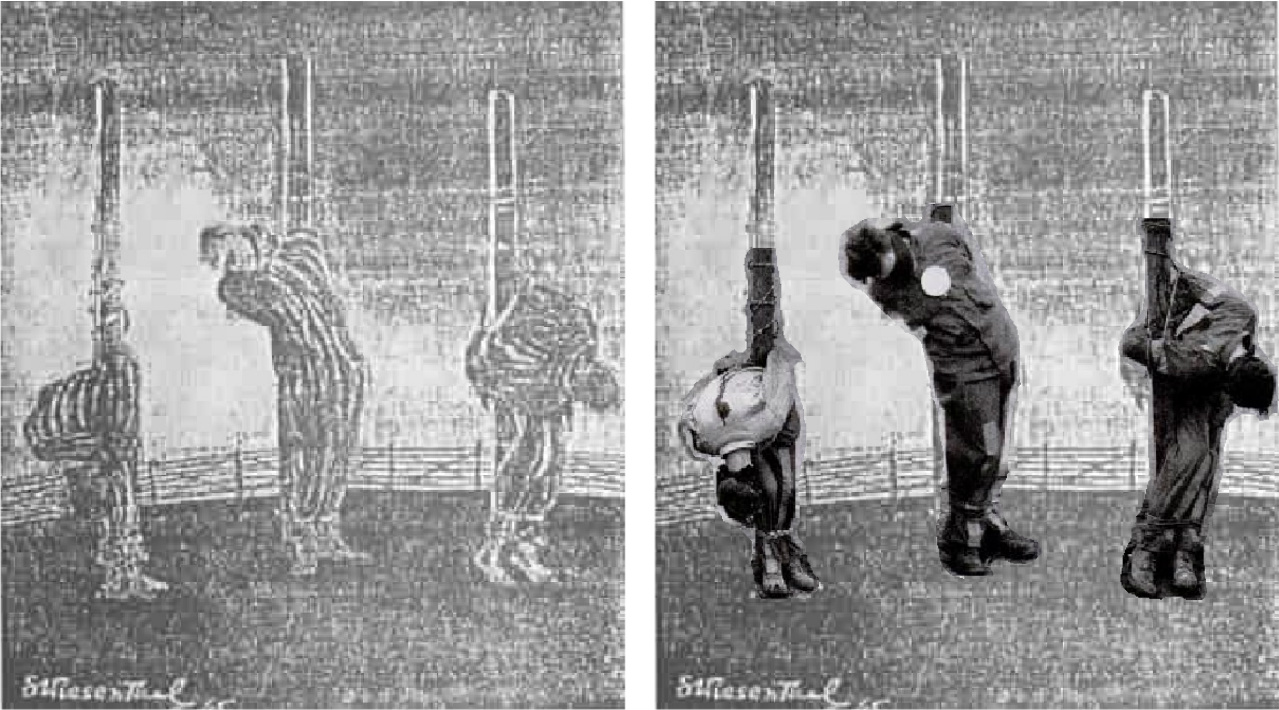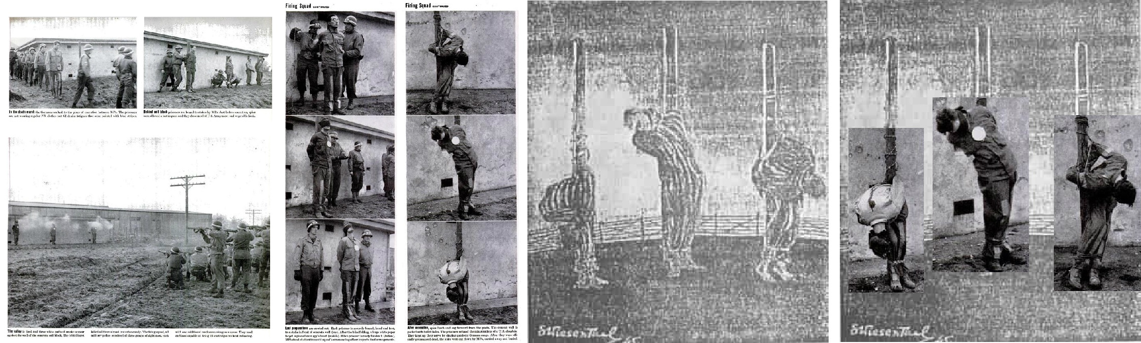 (click image to enlarge)But in actuality, LLIiesenthal's picture was plagiarised from theJune 11, 1945 edition of LIFE Magazine. Which features photosof three Germans soldiers being executed by the Americans.