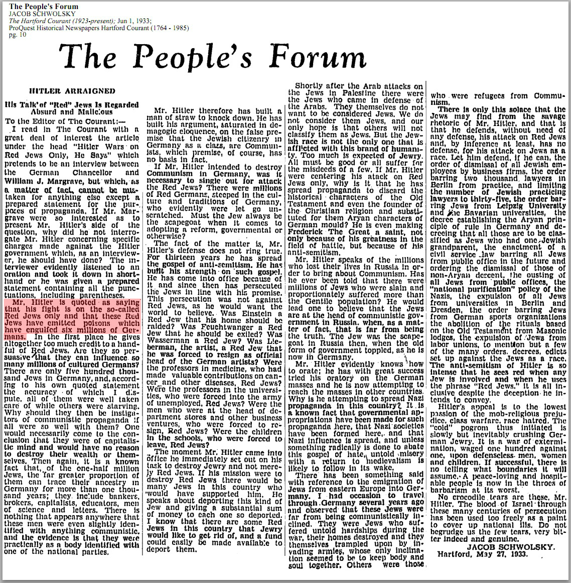 1933: Jews poisoned 6,000,000 Germans, said Hitler