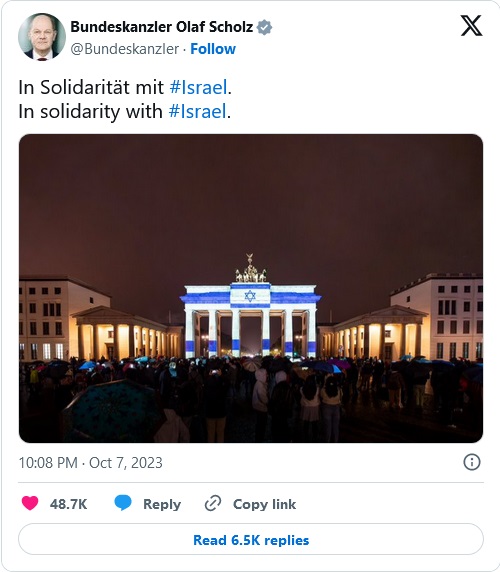 And German shabbos goy and Chancellor Olaf Sholz urging not solidarity with the