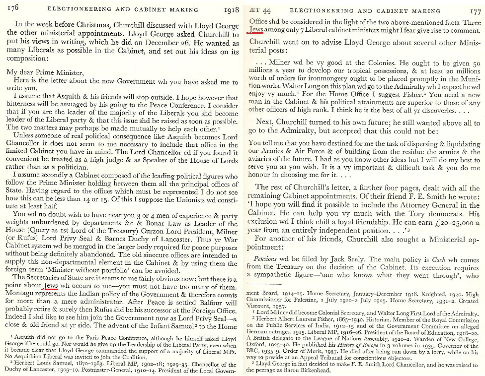 Three Jews among only 7 Liberal cabinet ministers might I fear give rise to comment.