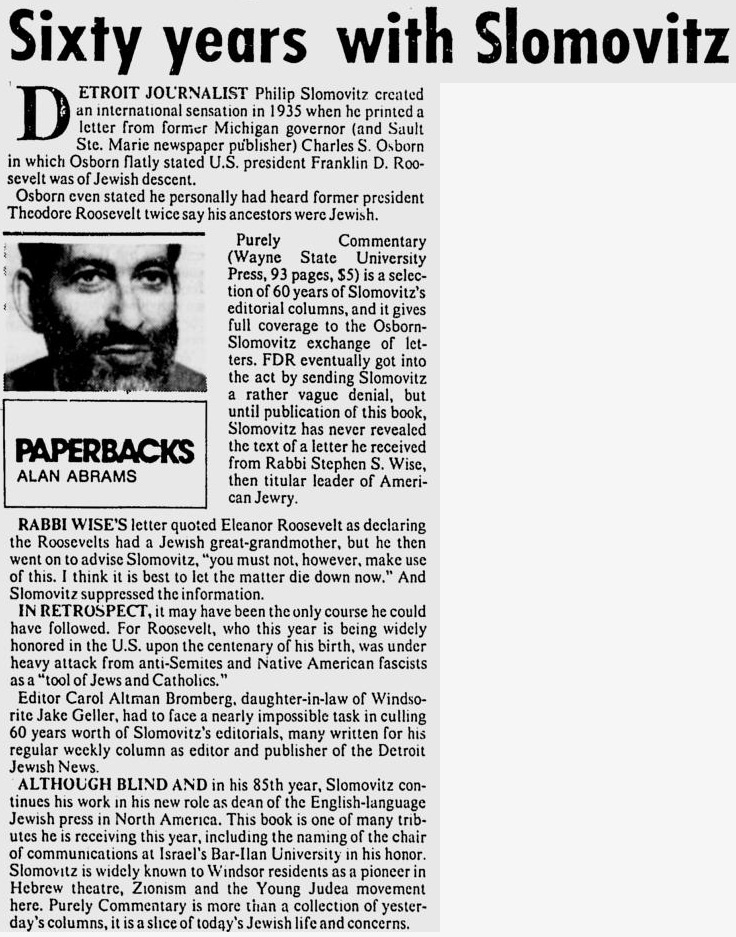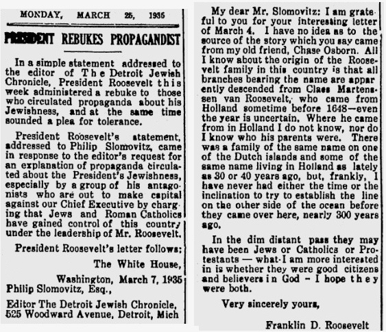 more details on FDR's Jewish ancestry and why the story was re-opened in 1982.