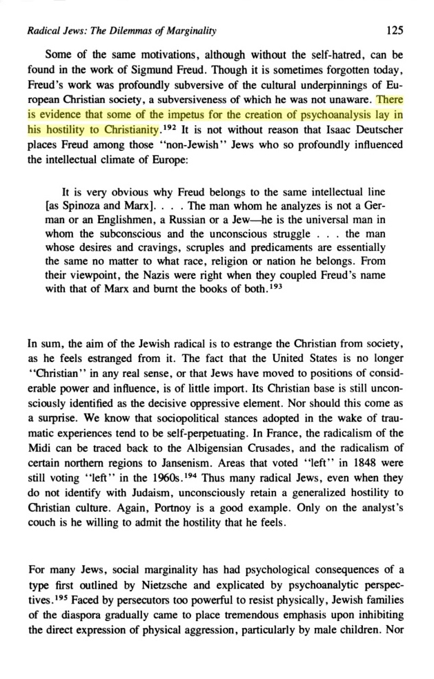 "Though it is sometimes forgotten today, Freud's work was profoundly subversive of the cultural underpinnings of European Christian society, a subversiveness of which he was not unaware. There is evidence that some of the impetus for the creation of psychoanalysis lay in his hostility to Christianity."