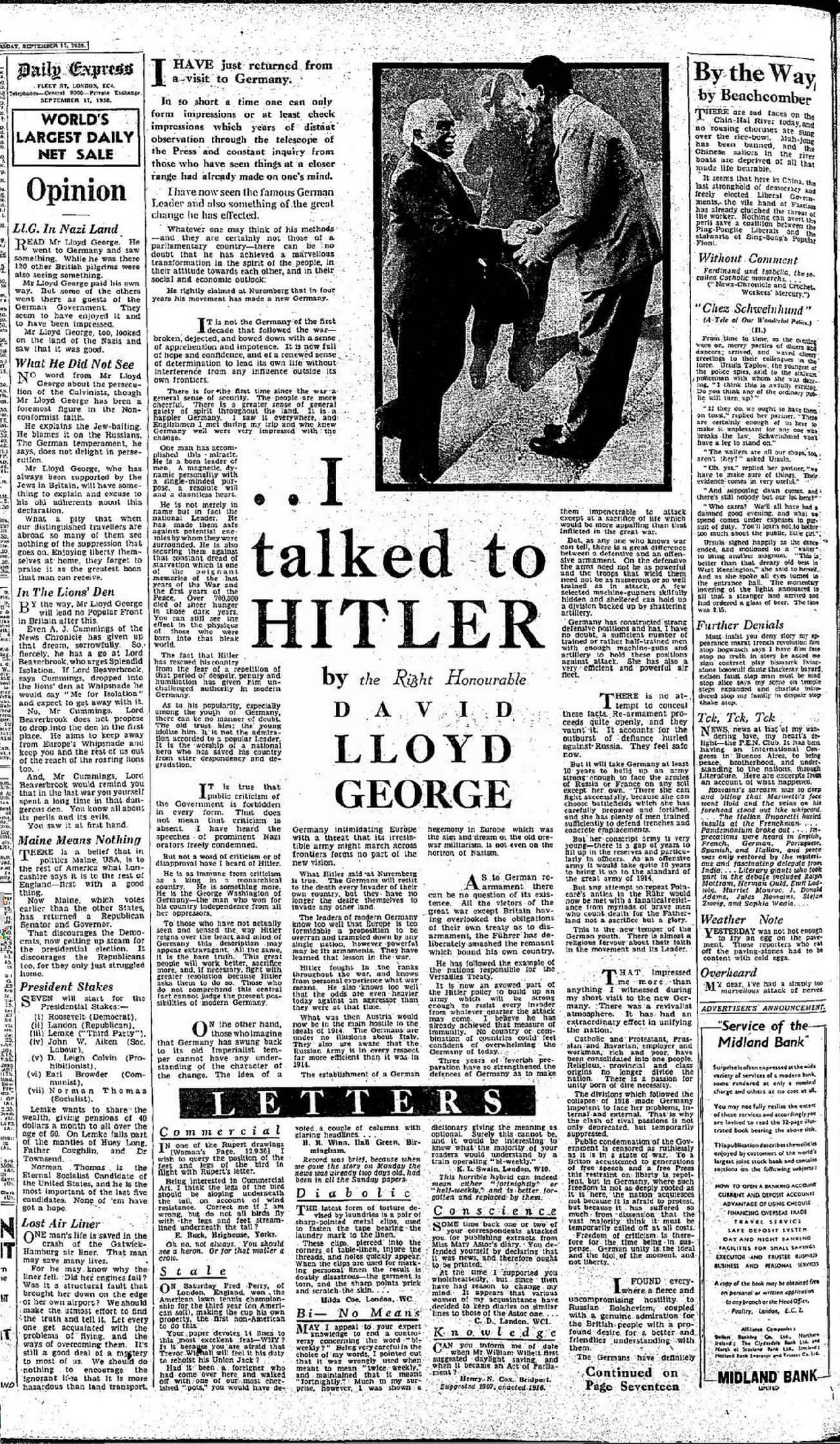 But not a word of criticism or of disapproval have I heard of Hitler.