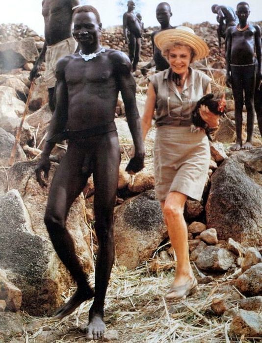 Leni Riefenstahl in her new post-war career as famed photographer - in Africa/Sudan: