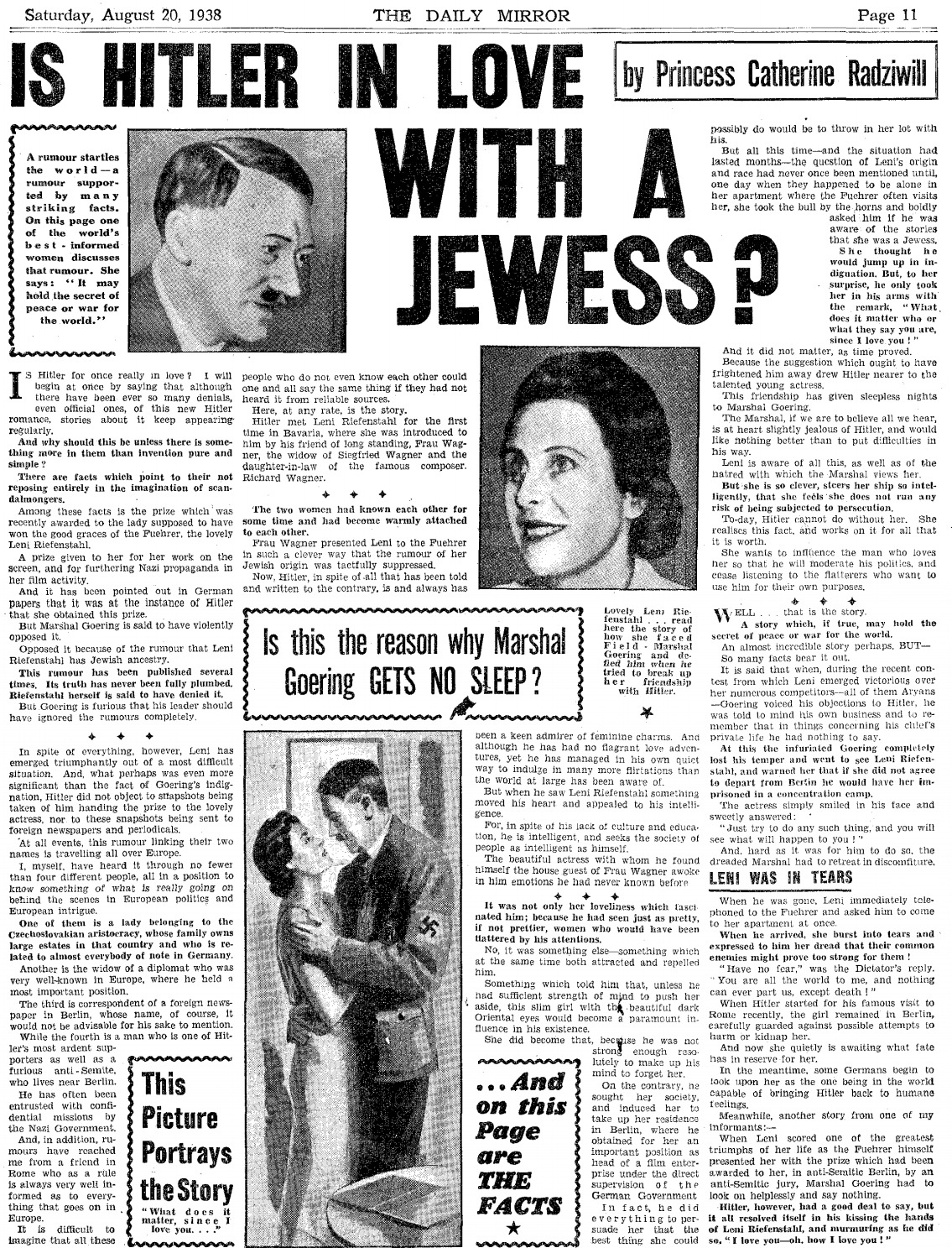 1. I am surprised how Leni looks so different these days, if she still alive. She looked very Jewish by the newspaper's picture. Great find! Keep up the great work.