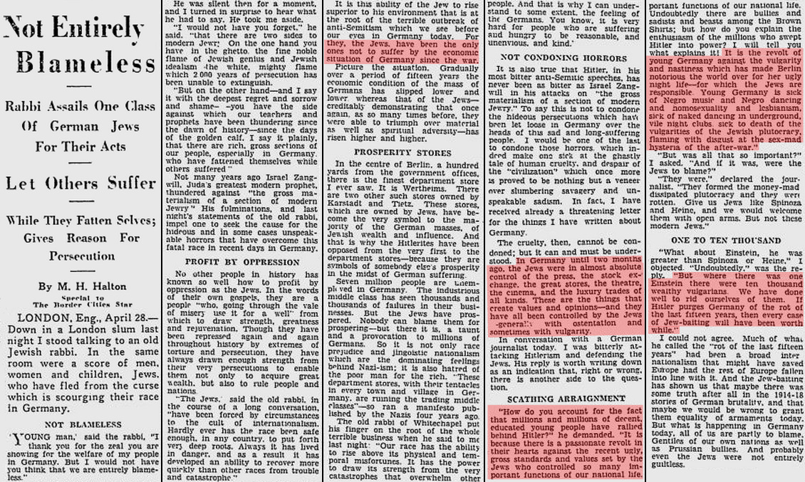 "If Hitler purges Germany of the rot if the last fifteen years, then every case of Jew-baiting will have been worth while."