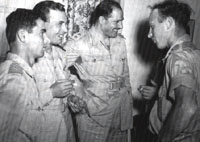 Aryeh Shalev (right) with Syrian officers at a meeting of the Iraeli-Syrian Mixed Armistice Commission in 1951