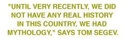 "Until very recently, we did not have real history in this country, we had mythology," says Tom Segev, a journalist and author who believes that the preexisting body of Zionist historical research is so saturated with myths that "New Historians" is the wrong sobriquet for him and his cohorts; they should, he says, be called Israel's first historians.