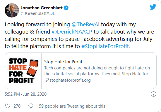The Stop Hate for Profit campaignexplicitly
