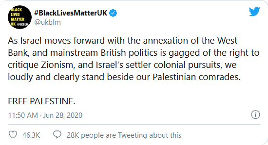 anti-racist coalition, tweeted its support for the Palestinian