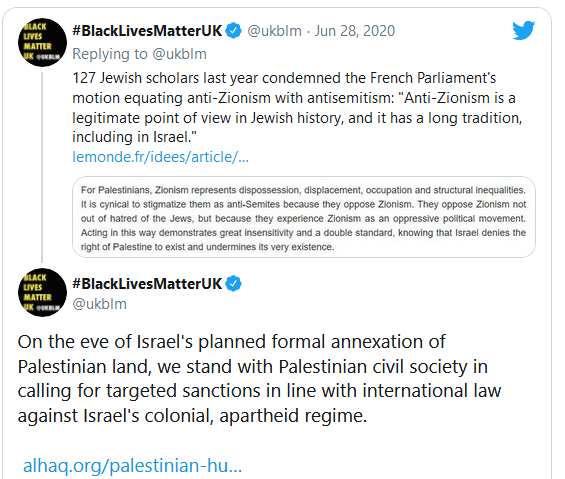 “sad” to see the tweets from Black Lives Matter UK.