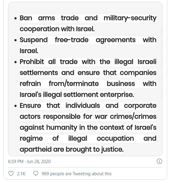 “As Israel moves forward with the annexation of the West Bank,