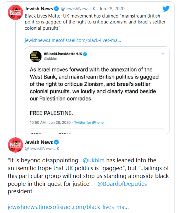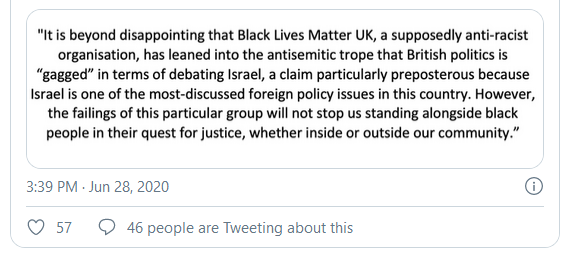 and leading pro-Israel group, predictably accused Black Lives