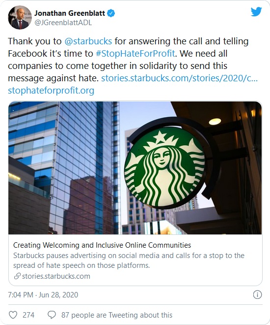 the Stop Hate for Profit campaign which is pressuring major