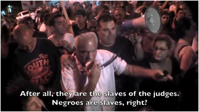 Israeli Jew in Hebrew, cheered on the by the Jewish mob: