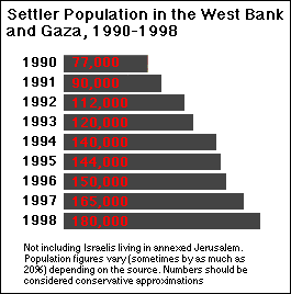 | Settlements Population Increase on the West Bank and Gaza Mostly AFTER the Oslo agreements. Illustrates Israel actual desire for continuing the occupation disguised under the "Oslo Peace Process". (Map source Foundation for Middle East Peace) |