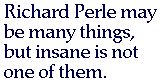 Now, one might be tempted to attribute Perle and the other neocons' rejection of the military's caution to insane hubris how could amateurs pretend to know more about military strategy than professional military men? However, Richard Perle may be many things, but insane is not one of them. Nor is he stupid. Undoubtedly he has thought through the implications of his plan. And it is apparent that the "inside-out" option would be a win-win proposition from Perle's perspective.