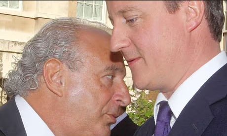 In an excellent article in The Guardian, journalist Michael White writes that British Prime Ministers Tony Blair and David Cameron were “in thrall to Green,” a man he describes as a “tax-dodging, undeserving parasite” and whose taste in material goods is “embarrassingly vulgar.” According to White, Blair was a “credulous sucker for a rich man with tax-shy habits,” giving Green a knighthood in 2006.