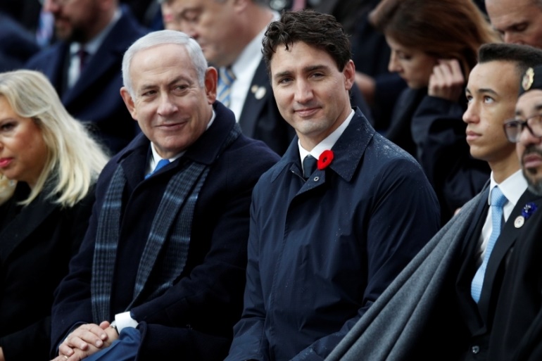 Israeli Prime Minister Benjamin Netanyahu and Canadian Prime Minister Justin Trudeau seen at a commemoration