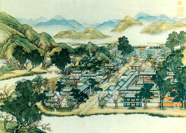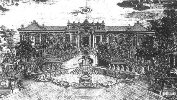 A old painting depicting a portion of the palaces and gardens.The Garden of Perfect Brightness - the great Yuan Ming Yuan of China - was one of the most magnificent gardens in the history of the world.