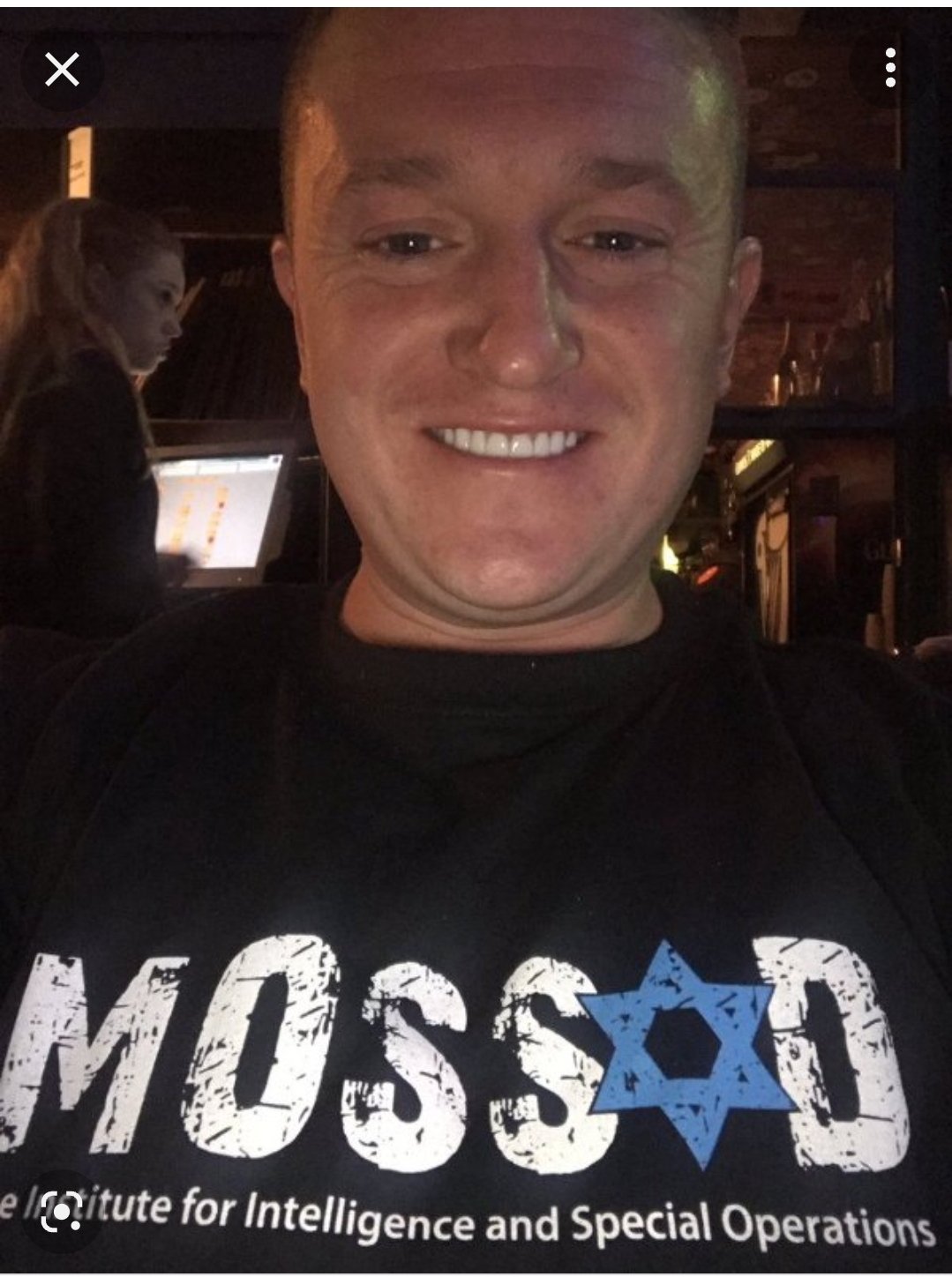 EDL-activist Tommy Robinson with a Mossad T-shirt