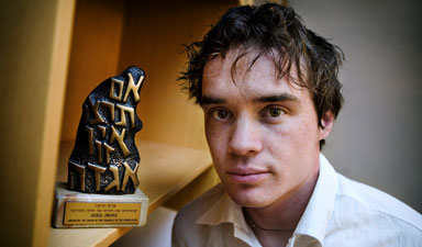 Ted Ekeroth with his Zionist award.