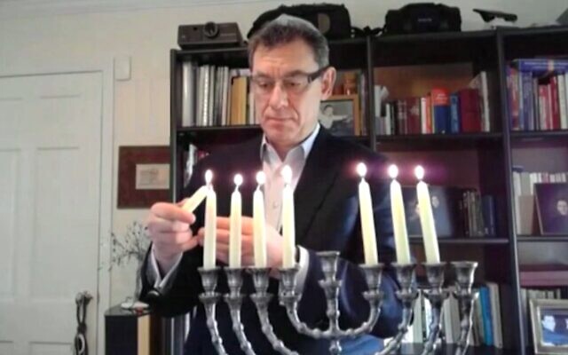 Pfizer CEO Albert Bourla lit the Hanukkah candles at a virtual ceremony organized by the Israeli embassy in Washington on Wednesday evening, just days after his pharmaceutical corporation received the final go-ahead to distribute its coronavirus vaccine across the US.Introducing Bourla, Ambassador Ron Dermer pointed out that the business executive is also the son of Holocaust survivors, as his parents were among the few Jews from Thessaloniki, Greece to survive the horrors perpetrated by the Nazis.“Seventy-five years after the Nazis murdered millions, Dr. Bourla is today leading the race to save millions,” Dermer said, lauding Pfizer for being the first corporation to develop a COVID-19 vaccine, which will be distributed to countries around the world, including Israel.In brief remarks before lighting the candles, Bourla noted that Hanukkah is “the story of great determination in face of adversity,” and also “the story of the possible becoming possible.”