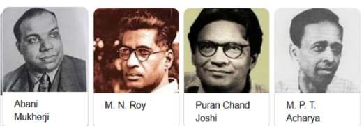 The two leading and founders of the communist movement in India were M N Roy (Manabendra Nath Roy born Narendra Nath Bhattacharya,) Abani Mukherji, and M. P. T. Acharya.