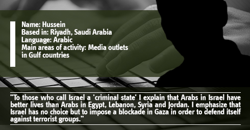 A lost cause in the comment war is the Arab arena, but even there, it turns out, there are those who maintain the wellbeing of Zionism. A few Arab Israelis who were part of hasbara efforts during various wars refused to be interviewed, but young Saudi Hussein, resident of Riyadh, is proud of his work. He started posting comments supporting Israel four years ago.“I admit that I used to hate Israel because of the propaganda in the Arab and Muslim world,” he said, “And I even thought any dialogue with Israelis is treason. But as time passed, my opinions changed, and the Israelis I talk to helped me see the facts.” Hussein saves Israel’s face on Arab websites and on Facebook. More than once, he said, he has received hateful comments from extreme Islamists, as he calls them, who were enraged about his support of Israel’s existence and about negative comments he made regarding Hamas and Hezbollah.