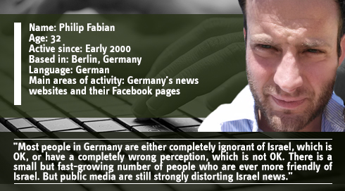But Israelis and Jewish communities in the Diaspora are not alone in the fight. “The majority of the people writing pro-Israel talkbacks are not Jewish,” said Philip Fabian, a 32-year-old German from Berlin. “I never started to write pro-Israeli talkbacks consciously. I am a classic news-junkie, and the internet contributed a lot in developing my political conscience, starting in the post 9/11 world and the Intifada of the last decade. It made me realize the obvious shortcomings of mainstream media news outlets, especially when it comes to Israel.”