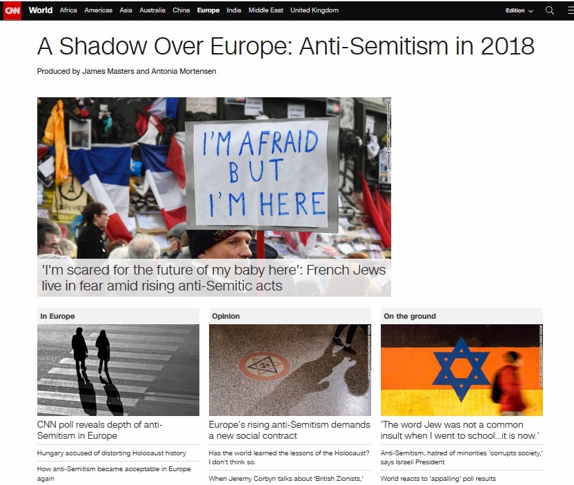 Recently we saw CNN running and rerunning its hyped "Special" on Anti-Semitism: "A Shadow Over Europe: Anti-Semitism in 2018"