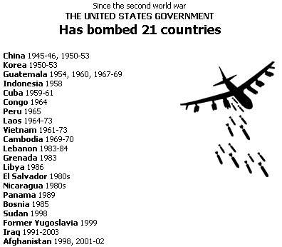 List Excludes Pakistan, Somalia, and Yemen. Several of these countries were bombed again and again at a later date.