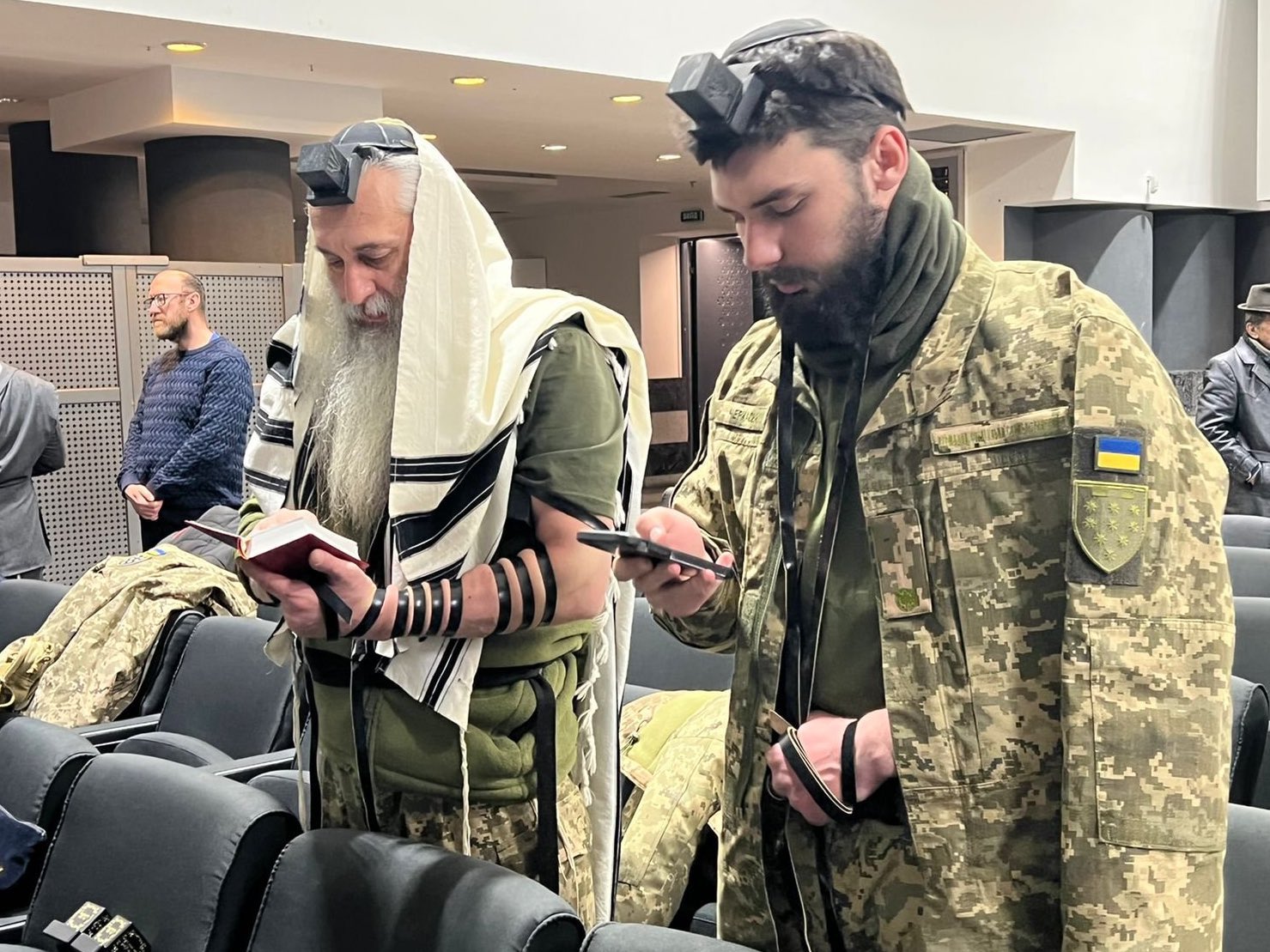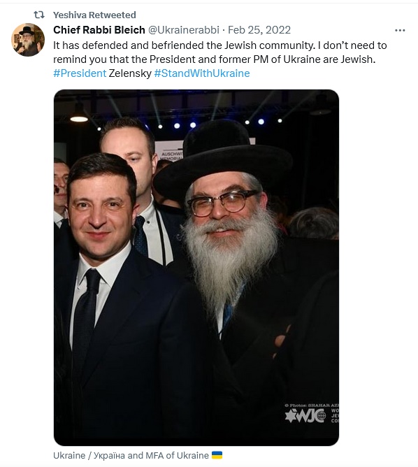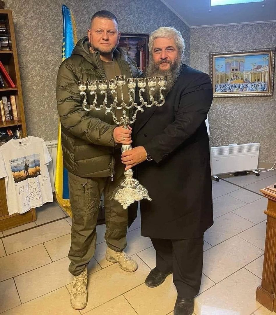 Ukraine's Commander-In-Chief, with a Jewish rabbi holding the