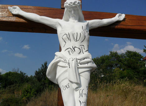 across the torso of the Jesus statue. Another graffiti on Jesus’
