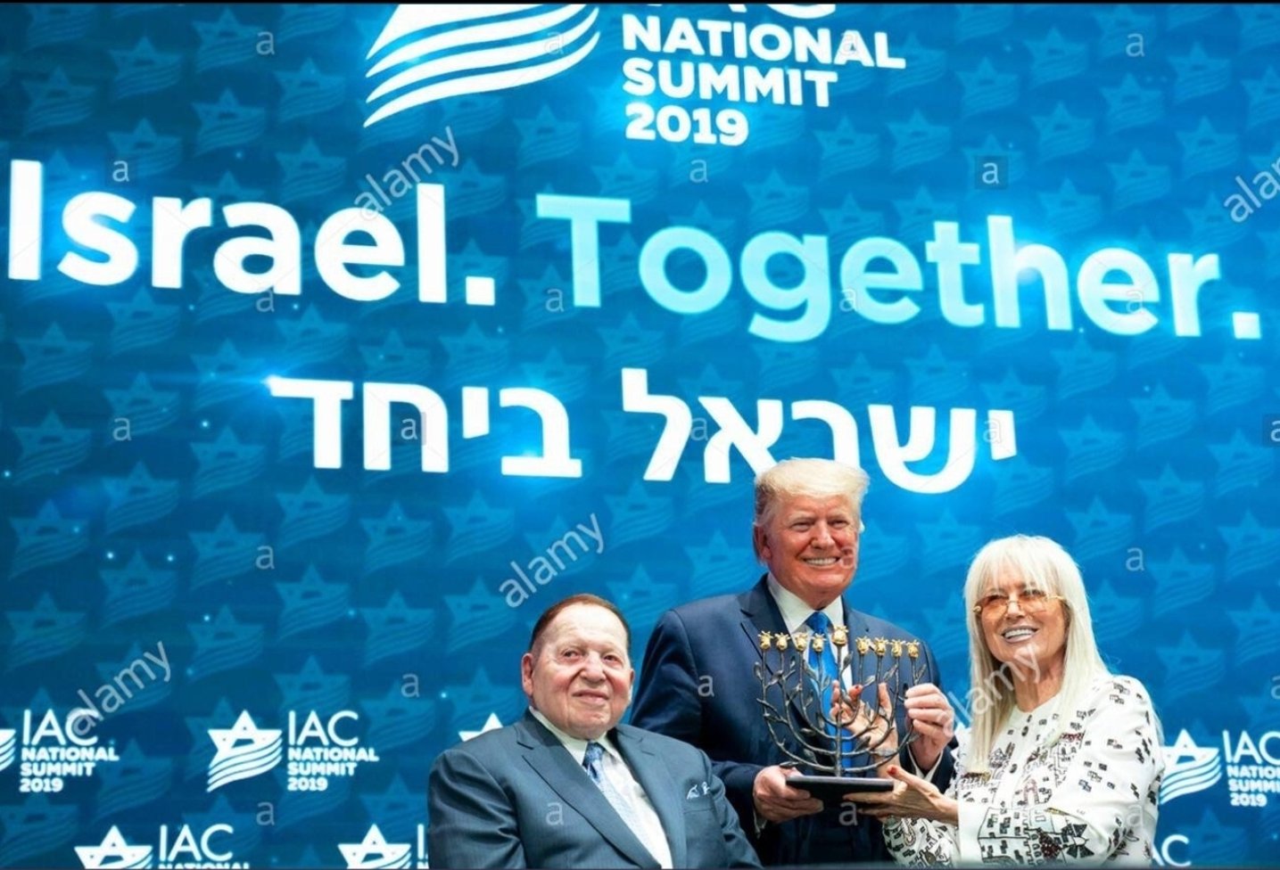 President Donald Trump with a Jewish candle in hand with Zionist "Israel Firster" and Republican Party megadonor