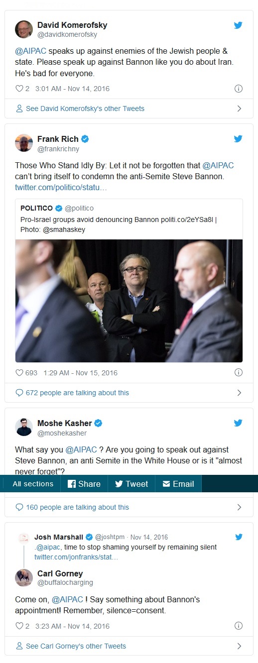 ”Pro-Israel groups avoid denouncing Bannon" cited