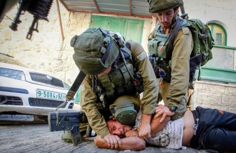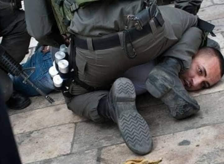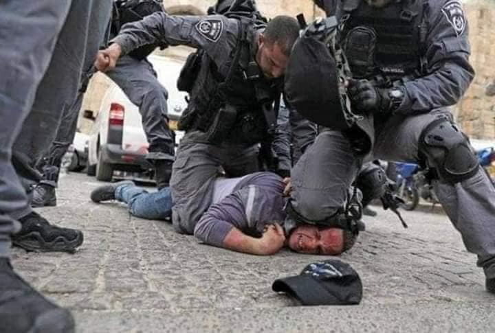 Israeli forces brutalizing a Palestinian man (Facebook photo)