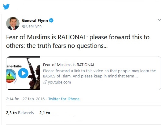 Flynn’s position on Israel is less clear, as he hasn’t spoken on them in great detail. Israeli media outlets suggested the government is likely keen on him because of a past Islamophobic Tweet, in which he declared fear of Muslims to be “rational.”