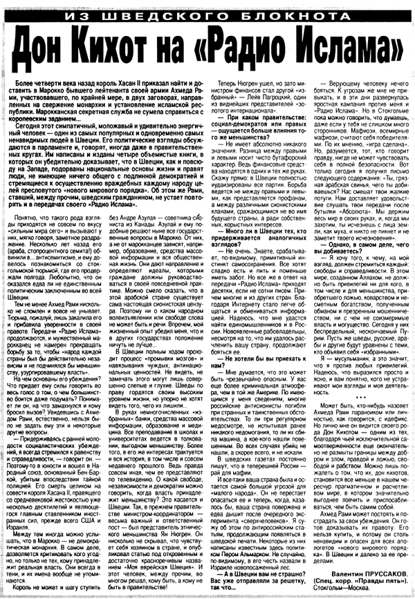 Per Ahlmark, former Swedish deputy Prime Minister, Liberal Party leader and No 1 pro-Israel lobbyist in Sweden has described Radio Islam as "the most vicious anti-Jewish campaign in Europe since the Third Reich".
