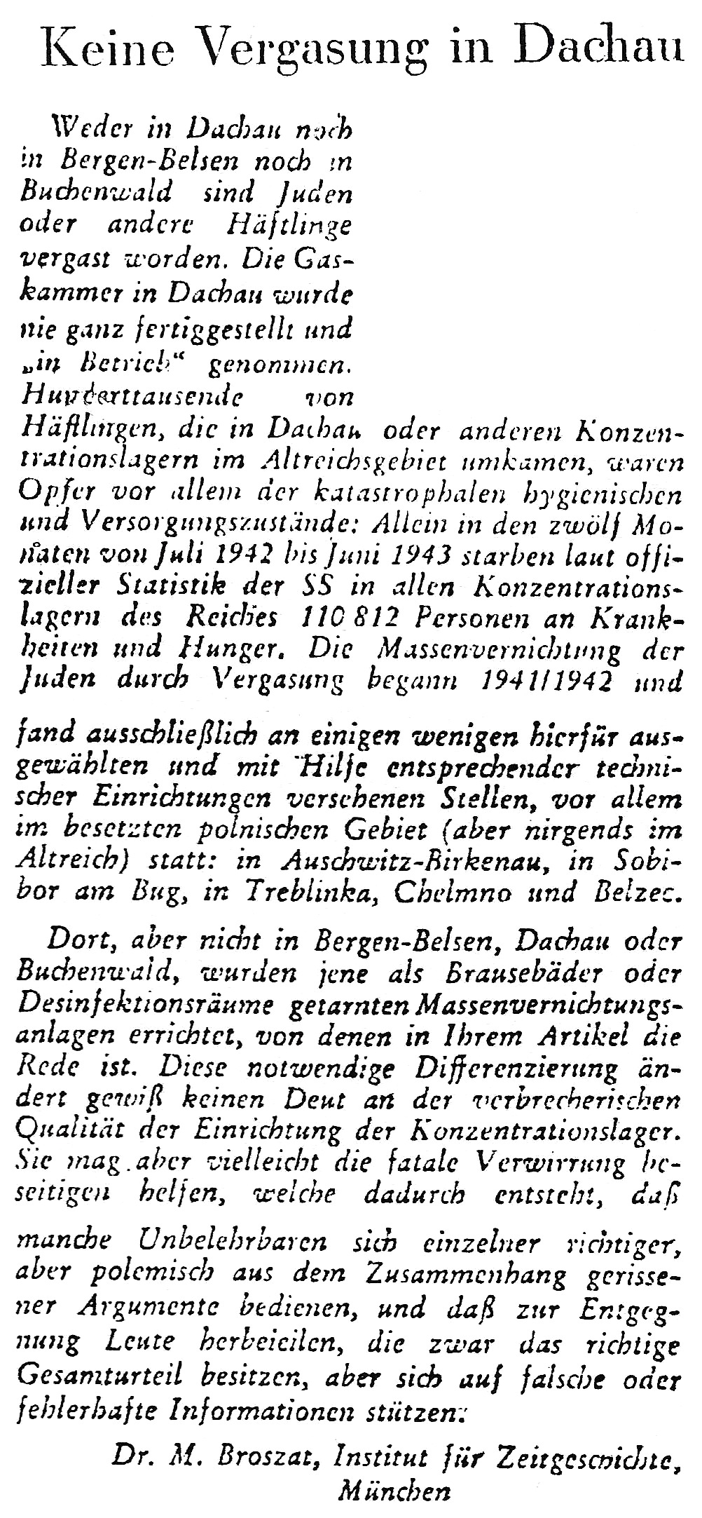 Dr. Martin Broszat, as it appeared in the Hamburg weekly Die