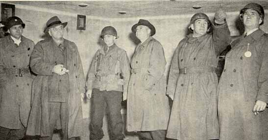 US Congressmen examine the gas chamber at Dachau, May 3, 1945.