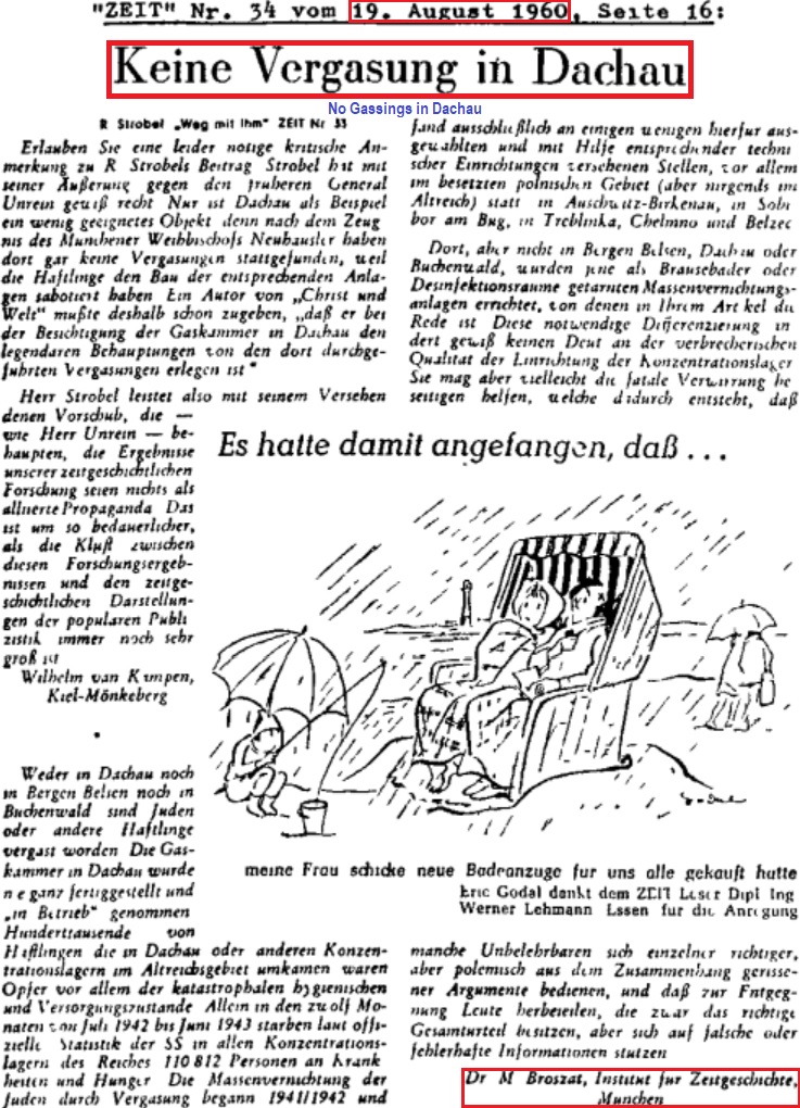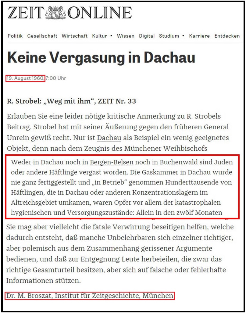 Dr Broszat, Institute for Contemporary History (Institut für Zeitgeschichte), newspaper "Die Zeit", German edition on August 19, 1960, and in the US edition on August 26, 1960.