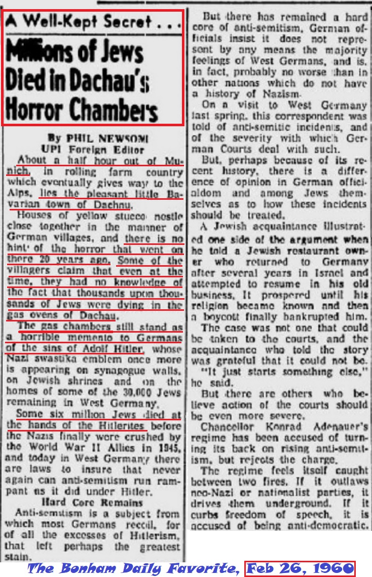 Good to know that the hollow hoaxers have finally revived the Dachau gas chamber lie (officially dropped between 1960 and circa 2001).