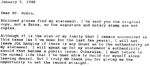 Copies of David Cole's original, signed, letter of recantation. Note the first segment that is directly addressed to Irv Rubin of the Jewish Defense League (JDL).