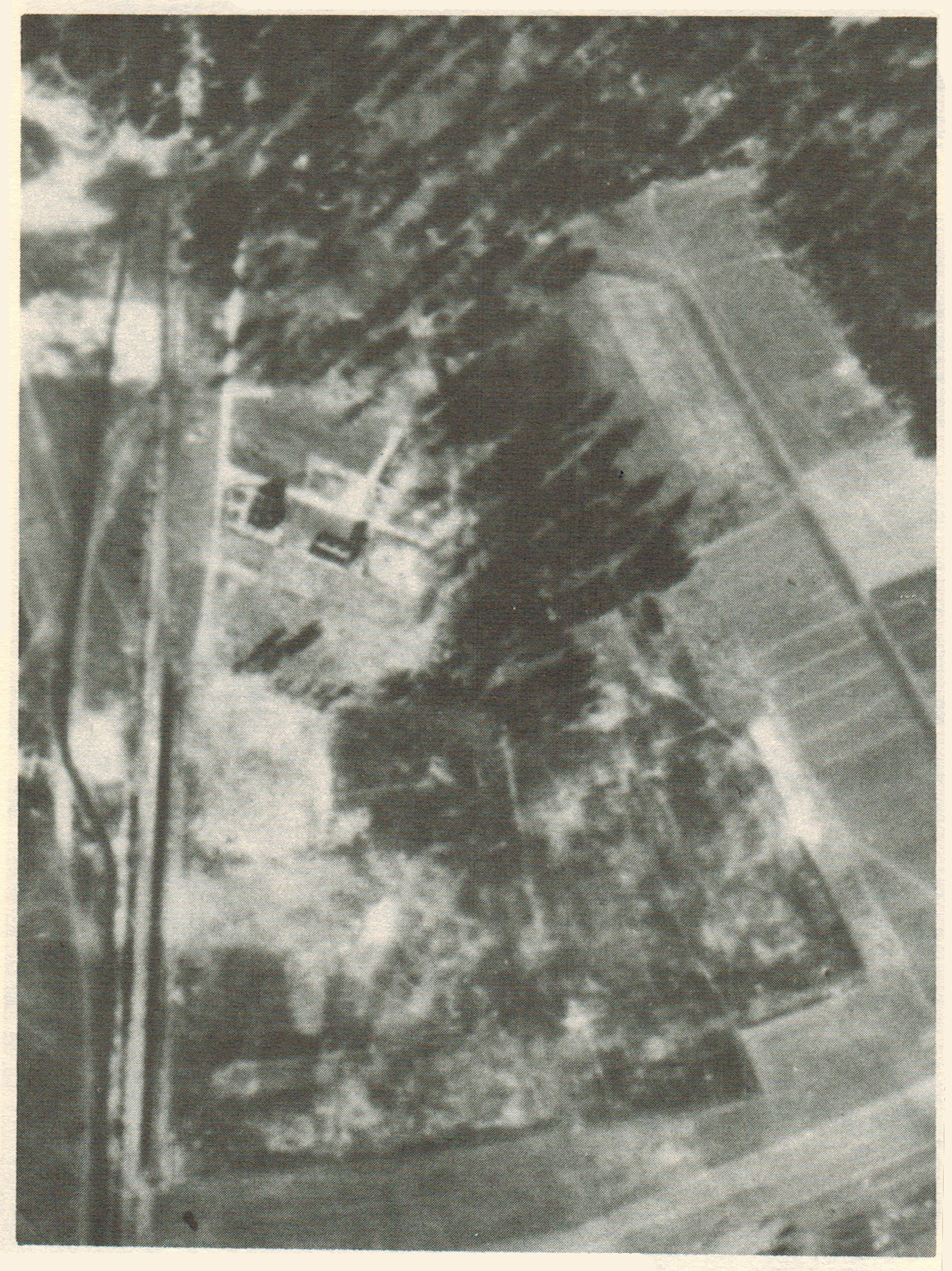 Trees and other vegetation seen in this aerial photo of Treblinka II (Sept. 1944) show that the camp site was not carefully closed off from the surrounding area.